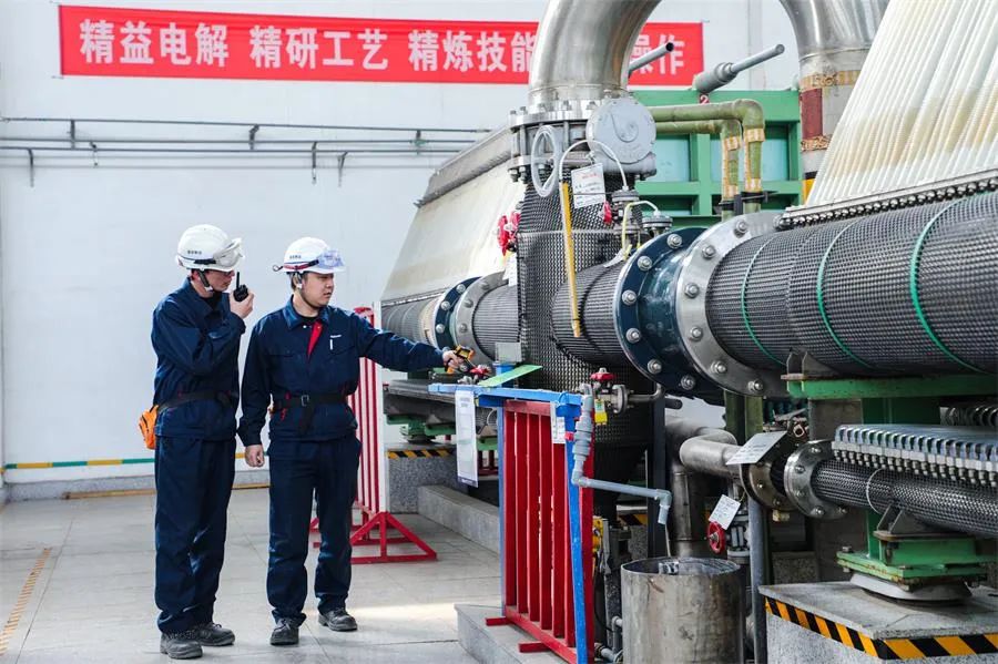 電解工段始終秉持創(chuàng)新理念,不斷通過技改技措和合理化建議實(shí)現(xiàn)挖潛降耗,提質(zhì)增效。