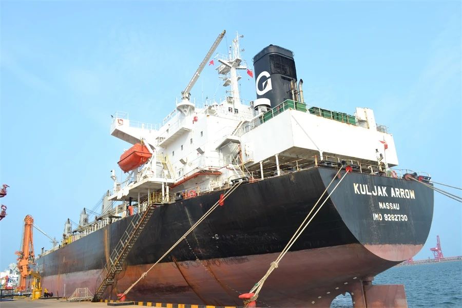 8月6日,海灣港務HW1#泊位成功實現(xiàn)首艘“兩用輪”—— 長達190米、寬32米,載重噸 44471 噸的 “庫里亞克之箭”(KULJAK ARROW)輪精準靠泊。這艘來自澳大利亞的多功能船舶采用獨立散貨艙與液貨艙設計,本航次先從澳大利亞裝載鐵礦石至日照嵐山港,再從董家口港運輸 4.2 萬噸液體燒堿返程,這種“重來重回”的運輸模式不僅優(yōu)化了船舶的載貨效率,也契合了中澳兩國在大宗商品貿易上的緊密合作需求。